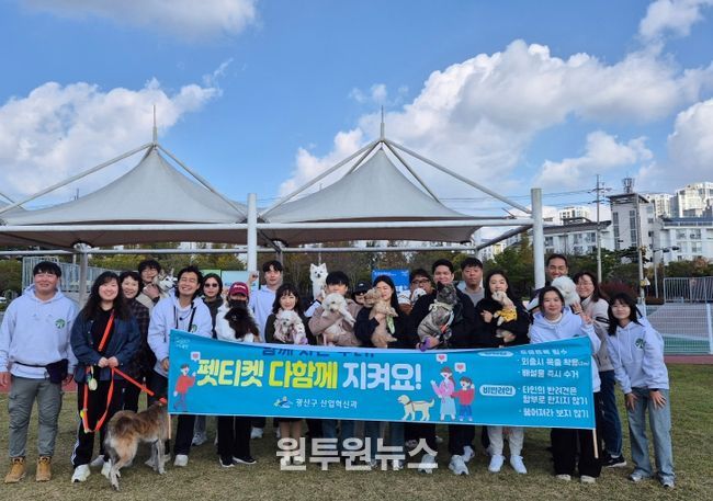 (원투원뉴스) 광주 광산구가 지난 1일 황룡친수공원에서 반려인들을 주체로 한 ‘반려문화 확산 펫티켓(반려동물 공공 예절) 캠페인’을 진행했다.