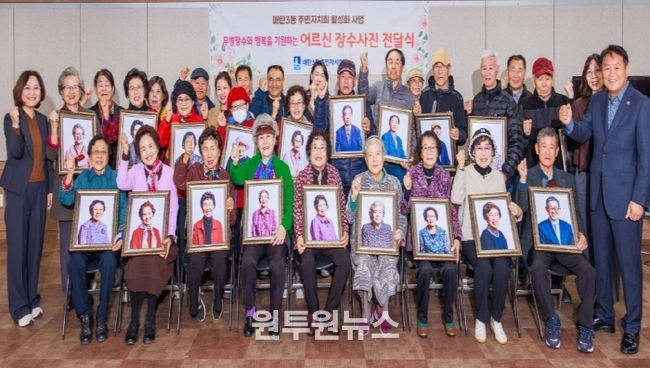 (원투원뉴스) 수원시 영통구 매탄3동 주민자치회는 지난 10월 31일 매탄3동 행정복지센터에서 ‘어르신 장수사진 전달식’행사를 진행했다.
