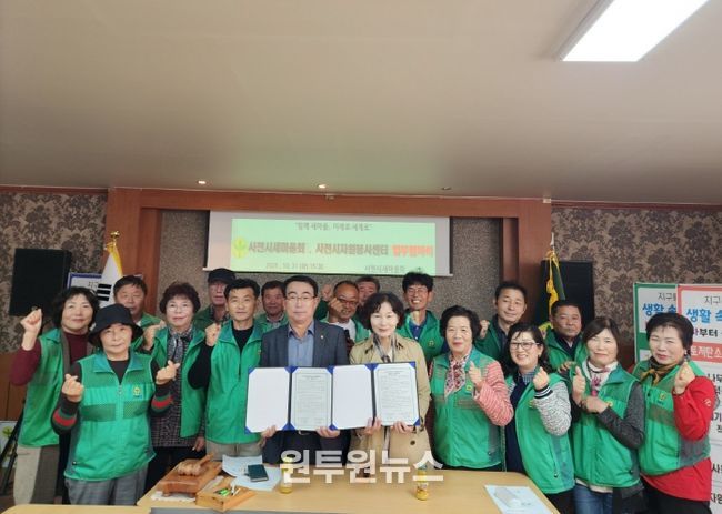 (원투원뉴스) 사천시새마을회(회장 이경덕)와 사천시자원봉사센터(센터장 구경화)는 10월 31일(금) 사천시새마을회관에서 '지역사회 봉사활동 활성화와 나눔문화 확산을 위한 업무협약(MOU)'을 체결했다.