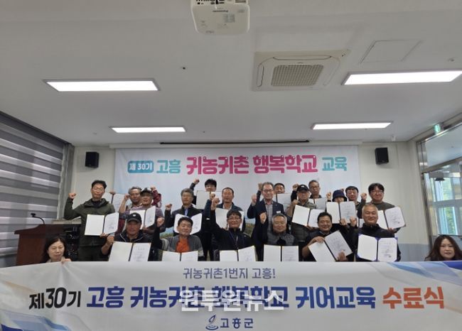 (원투원뉴스) 고흥군은 지난 10월 31일 남양면에 위치한 귀농귀촌 행복학교에서 제30기 귀농귀촌 행복학교 귀어교육 수료식을 성황리에 개최했다고 밝혔다.