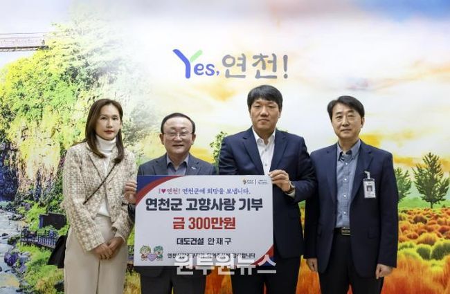 (원투원뉴스) 연천군은 11월 3일 군수실에서 고향사랑기부제 기탁식을 열고, (주)대도건설 안재구 대표로부터 300만 원의 고향사랑기부금을 전달받았다고 밝혔다.
