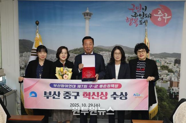 올해 7회째를 맞는'구·군 좋은정책상'은 부산참여연대 주관으로 매년 10월 29일 지방자치의 날을 기념하여 주민 삶의 질 향상에 기여한 정책을 추진한 기초지자체에게 수여하는 상으로, 중구는 올해 처음 이 상을 수상했다.