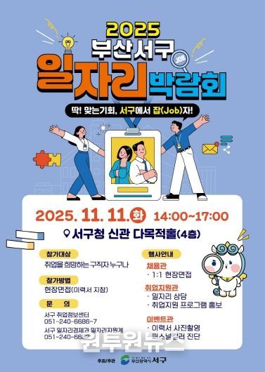 (원투원뉴스) 부산 서구는 구직자에게 다양한 취업 기회를 제공하고 지역 기업의 인력난 해소를 지원하기 위해 ‘2025 서구 일자리박람회’를 개최한다.