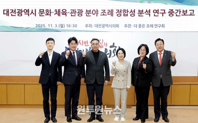 김영삼 회장(서구2, 국민의힘)은 “이번 연구는 단순한 법령 정비를 넘어, 대전의 문화·체육·관광 정책이 하나의 체계 안에서 시너지 효과를 낼 수 있도록 하는 기반 작업”이라며 “시민의 눈높이에 맞는 합리적인 자치입법 체계를 확립해 나가겠다”고 말했다.