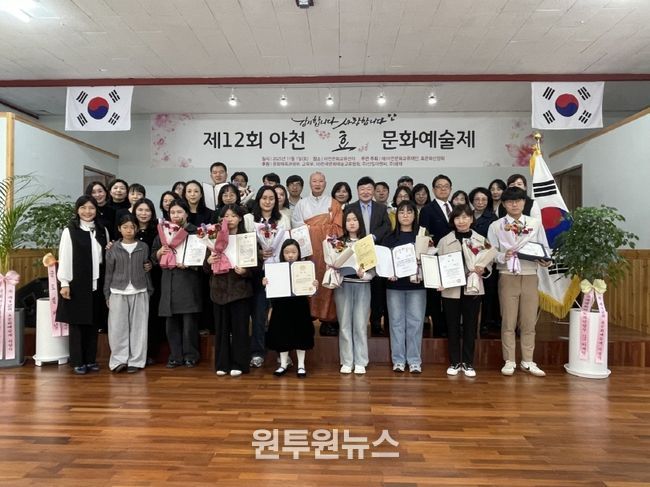 (원투원뉴스) 재단법인 아천문화교류재단(ACEF)이 주최-주관한 '제12회 아천효문화예술제’가 11월 1일 오후3시 아천문화교류센터에서 시상식이 개최됐다. 이날 행사에는 부모사랑 나라사랑의 올바른 가치관을 심어주기 위해 문화예술 부문의 우수한 인재들을 발굴 시상하고 올해로 12회를 맞았다.
