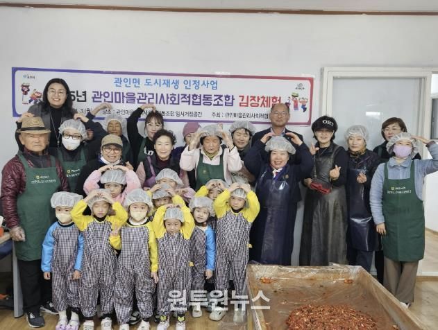 (원투원뉴스) 포천시 관인면은 지난 3일, 관인마을관리사회적협동조합 주관으로 지역에서 생산된 신선한 농산물을 활용해 ‘1‧3세대가 함께하는 김장체험 행사’를 성황리에 개최했다.