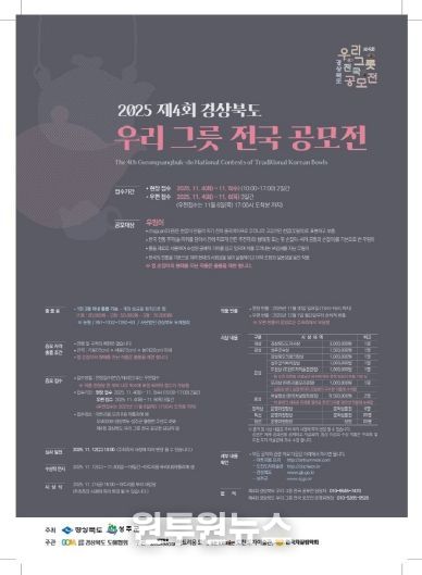 (원투원뉴스) 경상북도 도예협회에서는 전통 도예 문화의 아름다움과 우리 그릇의 정체성을 널리 알리기 위해 ‘2025 제4회 경상북도 우리그릇 전국 공모전’을 개최한다. 이번 공모전은 ‘우림이’(다관의 순우리말) 를 공모 대상으로 하여, 전국의 도예 장인들과 예비 작가들의 독창적이고 창의적인 작품을 모집한다.