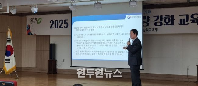 (원투원뉴스) 청주시는 4일 청원구청 민방위교육장에서 직원 230여명을 대상으로 ‘악성민원 대응 역량 강화 교육’을 실시했다.