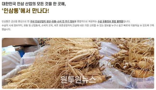 (원투원뉴스) 금산군은 금산군 인삼통 홈페이지가 전면 개편돼 인삼산업 디지털 플랫폼으로 새출발한다고 밝혔다.