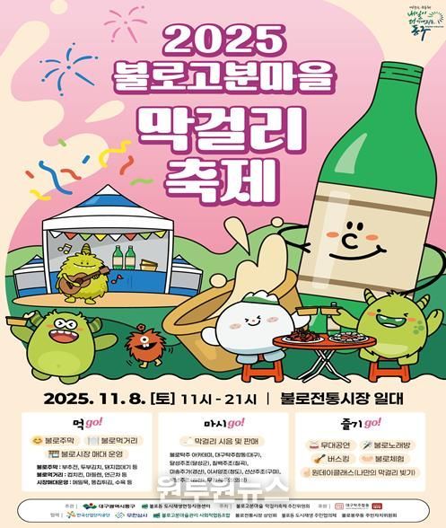 (원투원뉴스) 2025 불로고분마을 막걸리축제가 오는 8일 동구 불로동 일원에서 개최된다.