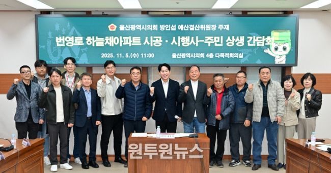 방 의원은 “민원인과 건설업체, 울산시와 남구, 시의회가 한자리에서 머리를 맞대고 해결책을 찾아보기 위해 이런 모임을 마련했다”며 “당장 이 자리에서 뚜렷한 대책이 나오기는 쉽지 않겠지만 이런 형식의 만남을 통해 서로 상황을 정확히 이해하는 일이 중요한 만큼, 앞으로도 주민 민원 해결을 위한 협의의 자리를 자주 마련하겠다”고 약속했다.