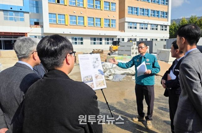 이날 현장점검에는 농소중학교 관계자와 울산교육청 관계 공무원 둥 20여명이 참석하여, 현재 공정률 82% 수준에서의 안전관리·품질관리 실태를 비롯해 ▲배치전환‧배정 원칙 ▲통학 안전대책 ▲디지털 학습환경 구축 계획 등을 종합적으로 점검했다.