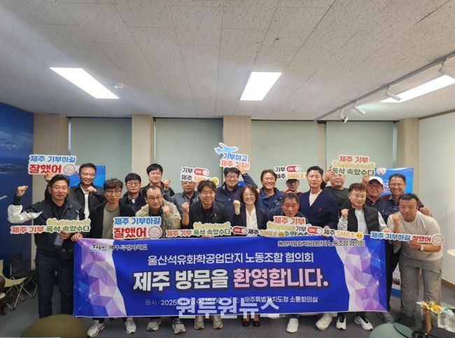 (원투원뉴스) 제주특별자치도는 울산석유화학공업단지 노동조합협의회(의장 우영석)가 5일 제주도청을 방문해 고향사랑기부금을 전달했다고 밝혔다.