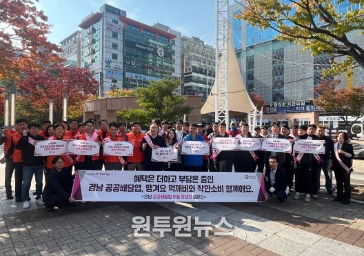 공공배달앱 인지도를 높이고, 지역 소상공인 매출 증대를 도모하기 위한 이번 캠페인에 경남도·창원시, 공공배달앱 운영사인 ‘땡겨요’·‘먹깨비’, 경남소상공인연합회, (사)한국외식업지부경남지회 등이 참여해 공공배달앱 혜택과 이용 방법을 홍보했다.
