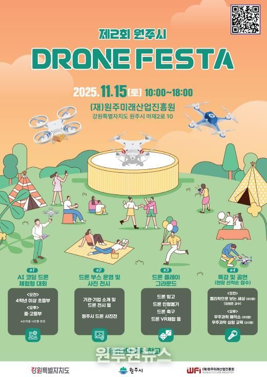 (원투원뉴스) 원주시는 오는 15일 오전 10시부터 오후 6시까지 원주미래산업진흥원에서 ‘제2회 원주시 드론페스타’를 개최한다.