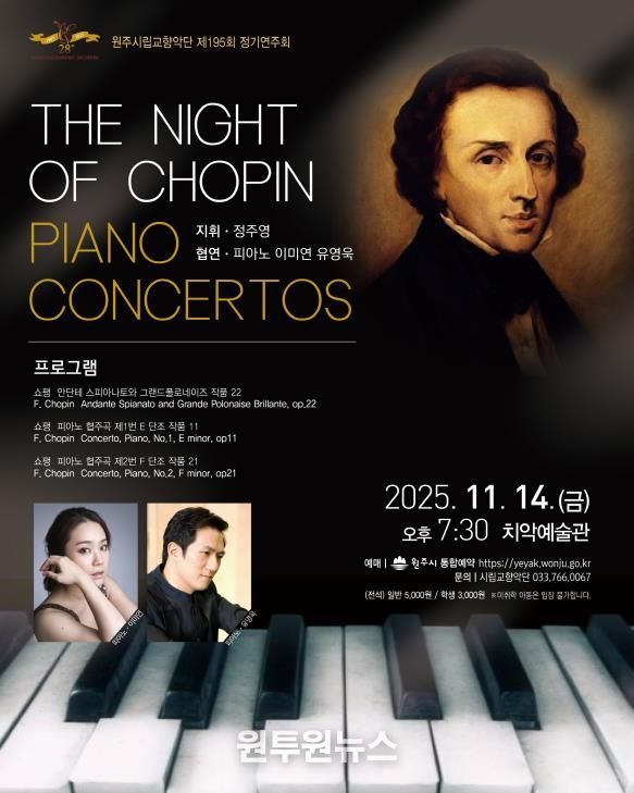 (원투원뉴스) 원주시립교향악단은 오는 14일 오후 7시 30분, 치악예술관에서 제195회 정기연주회 ‘The Night of CHOPIN’을 개최한다.