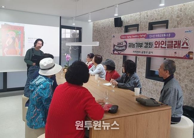 (원투원뉴스) 부산시 금정구는 11월 중 금정구 하하센터(금사동 소재) 개소를 앞두고 지난 5일 시범운영 프로그램으로 지역주민을 위한 사회공헌 일환의‘와인클래스’를 진행했다.