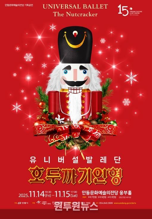 (원투원뉴스) 안동문화예술의전당은 연말을 맞아, 전 세계가 사랑하는 고전 발레 '호두까기 인형'을 무대에 올린다. 이번 공연은 11월 14일 오후 7시 30분, 11월 15일 오후 5시 안동문화예술의전당 웅부홀에서 진행되며, 국내 대표 발레단인 유니버설발레단이 출연해 풍부한 음악과 함께 완성도 높은 클래식 발레를 선보인다.