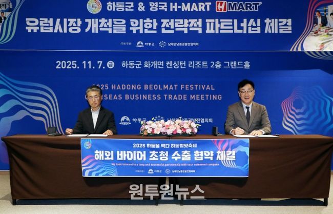 먼저 군은 유럽 내 한국 농식품 유통의 핵심 거점인 영국 H-MART 및 유럽 주요 파트너사와 ‘영국 수출 전략적 파트너십 협약’을 체결했다.
