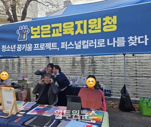 이 학생들은 8일 ‘보은군 청소년 문화 축제(청·기·행)’에서 퍼스널컬러 체험 부스를 직접 운영하며 배운 기술을 선보여 큰 호응을 얻었다.