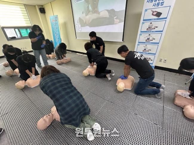 참가자들은 실제 상황을 가정한 심폐소생술 실습을 통해 응급상황 발생 시 신속하고 정확하게 대처할 수 있는 능력을 향상시켰으며, 오전 16명, 오후 27명 등 총 43명이 참여했다.