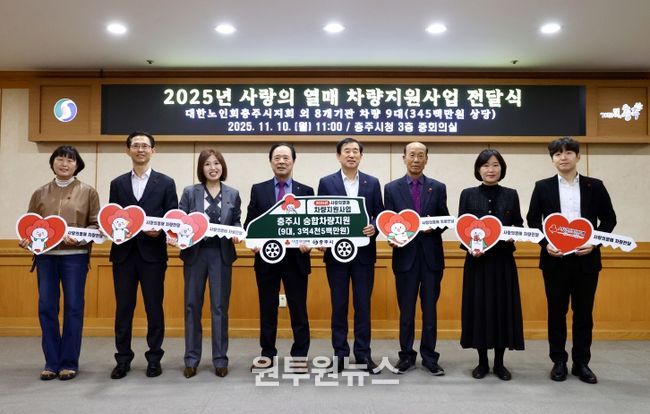 이날 기탁식에는 조길형 충주시장, 이민성 사회복지공동모금회장과 차량지원사업에 선정된 사회복지시설 9개소 중 6개소의 시설장 등 관계자가 참석했다.