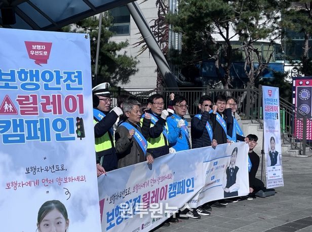 (원투원뉴스) 대전시는 2025년 보행안전주간(11월10일~14일) 맞아 10일 오후 2시, 중구 대흥동 우리들공원 일원과 서구 둔산동 타임월드 인근 보행자 우선도로에서‘보행안전 릴레이 캠페인’을 진행했다.