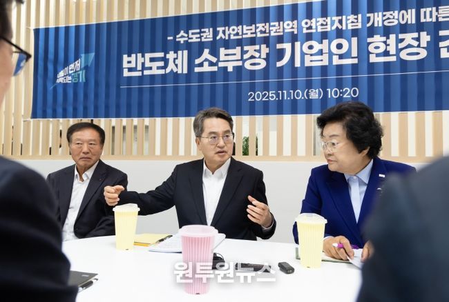 김동연 지사는 “저희가 국토부하고 여러 차례 노력을 해서 (자연보전권역 안에서의 연접개발 적용)지침을 18년 만에 개정을 했다”며 “산단 사업 마무리를 열심히 하고 있는데, 함께 관심 가져주시면 좋은 성과가 있을 것”이라고 말했다.