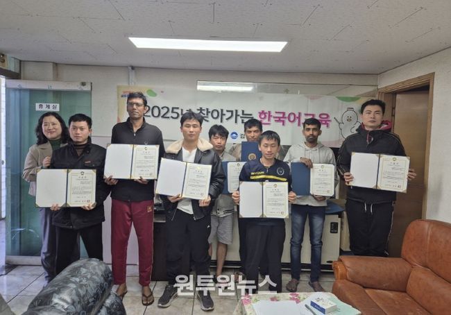 (원투원뉴스) 김해시는 외국인 근로자를 위한 ‘찾아가는 한국어 교육’ 수료식을 개최했다고 10일 밝혔다.