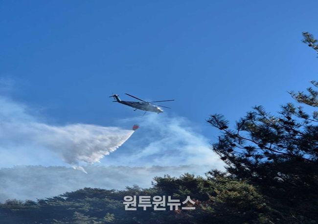 산불이 발생한 화천군 간동면 방천리 산190번지 일원은 차량 진입이 불가하여 진화 작업에 어려움이 있었으나, 인근 권역에 배치된 임차헬기 4대를 선제적으로 투입하여 확산을 조기에 방지하고 산림청, 소방, 군 헬기를 추가(5대)로 지원·투입되어 2시간만에 주불 진화를 완료했다.