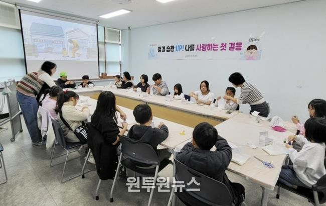 (원투원뉴스) 태안군이 지난 8일 태안군청소년수련관 행복마당에서 관내 드림스타트 아동 20명이 참여한 가운데 친환경 비누 만들기 체험을 내용으로 하는 ‘청결 습관 UP!, 나를 사랑하는 첫 걸음’ 프로그램을 진행했다고 밝혔다.