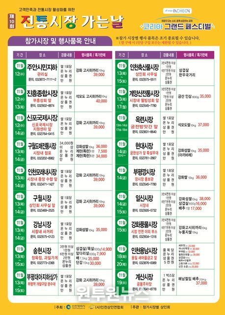 이번 행사는 (사)인천상인연합회(회장 서장열)가 주최하고 인천광역시(시장 유정복)가 후원하며 ‘인천 세일페스타’ 시기에 맞춰 관내 18개 전통시장에서 진행된다.