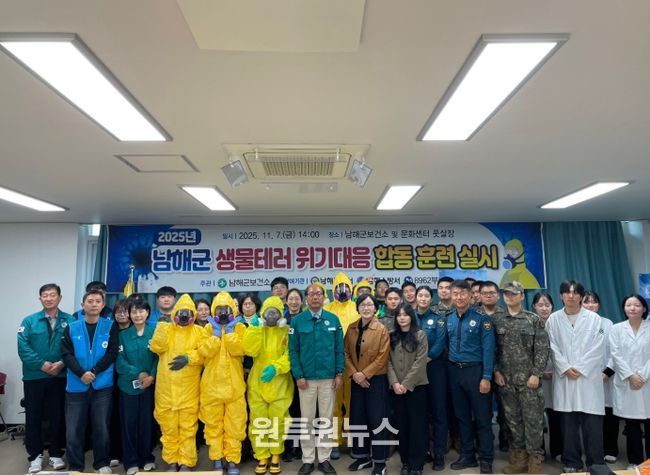 (원투원뉴스) 남해군은 지난 7일 남해군보건소 치매안심센터와 남해문화센터 인근 풋살장에서 ‘2025년 생물테러 위기대응 합동 모의훈련’을 실시했다.