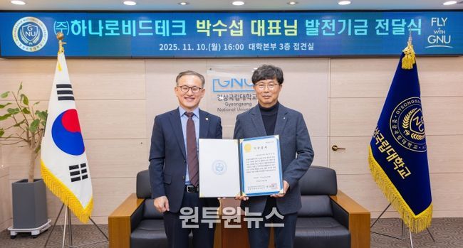 (원투원뉴스) 경상국립대학교는 진주시 내동면에 위치한 ㈜하나로비드테크 박수섭 대표가 대학발전기금 1000만 원을 기부했다고 밝혔다.