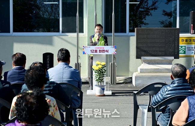 (원투원뉴스) 고령군종합자원봉사센터(센터장 이강하)는 11월 10일 성산면 무계리에서 자원봉사자와 주민 등 100여명이 참석한 가운데'2025년 고령 행복마을 12호 현판식'을 가졌다.