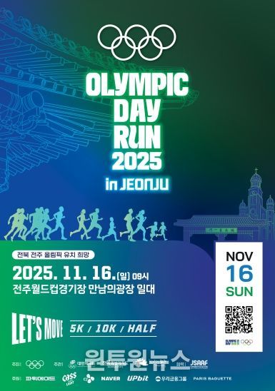 11일 전주시에 따르면 ‘올림픽데이런’은 IOC 창설일(1894년 6월 23일)을 기념해 올림픽 가치 확산을 목적으로 각국 올림픽위원회가 주관하는 글로벌 캠페인으로, 이번 행사는 IOC가 주최하고 전북특별자치도·전주시·대한체육회가 주관하는 마라톤 대회 형식으로 꾸며진다.