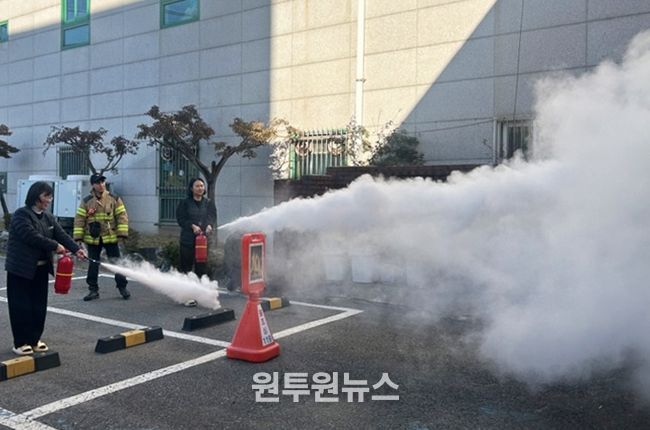 이번 훈련은 청사 내 화재 발생 상황을 가정해 진행됐으며, 화재 발생 시 신속한 초기대응 및 대피요령, 소화전 및 소화기 등 소화 기구 사용 방법 숙지에 중점을 뒀다.