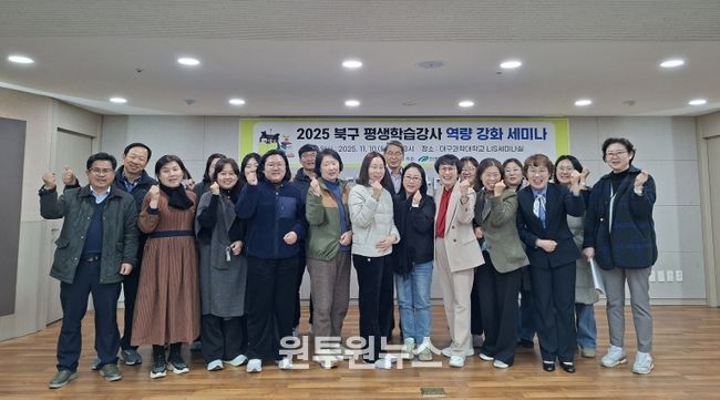 (원투원뉴스) 대구 북구청은 11월 10일 대구과학대학교 LIS 국제 세미나실에서 '2025 북구 평생학습강사 역량강화 세미나'를 열고, 지역 평생학습 강사 30여 명을 대상으로 ‘생성형 AI 활용 및 교수기법’ 연수를 실시했다.