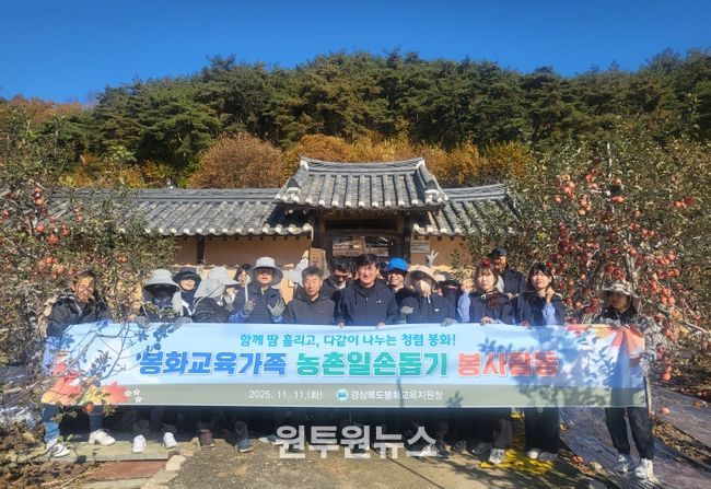 (원투원뉴스) 봉화교육지원청은 11월 11일 조선시대 청백리의 상징인 계서당에서 청렴정신을 되새기며 지역 농가의 사과 수확을 돕는 농촌 일손돕기 봉사활동을 실시했다.