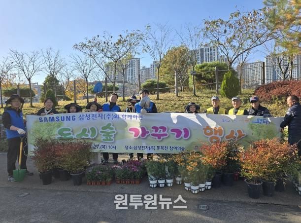 (원투원뉴스) 평택시와 삼성전자는 지난 10일 통복천 ‘참여의숲’에서 ‘도시숲 조성 및 가꾸기 행사’를 열고, 기업과 지역사회가 함께 만드는 지속 가능한 녹색도시 조성 활동에 앞장섰다.