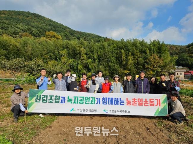 (원투원뉴스) 고성군 녹지공원과와 고성군 산림조합은 11월 7일, 가을 수확기를 맞아 일손 부족으로 어려움을 겪고 있는 대가면 농가를 찾아 깨타작 일손돕기를 실시했다.