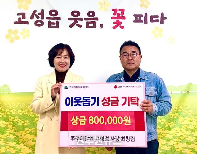 이현주 고성읍장은 “따뜻한 나눔을 실천해주신 최창림 사장님께 진심으로 감사드린다”라며, “이번 기탁은 단순한 금전적 나눔을 넘어, 지역사회를 향한 따뜻한 마음이 전해지는 소중한 본보기가 됐다”라고 말했다.