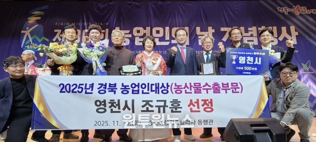 (원투원뉴스) 영천시는 11일 경북여성가족플라자에서 개최된 제30회 농업인의 날 기념행사 ‘농산물 수출부문’에서 조규훈 영천친환경농업영농조합법인 대표가 농업인대상을 수상했다고 밝혔다.