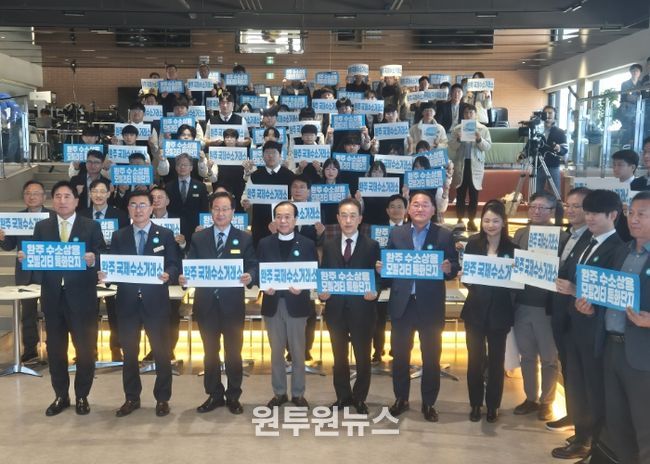 (원투원뉴스) 전북특별자치도와 완주군은 11일 우석대학교 본관 23층(W-SKY 23)에서 ‘완주군 수소산업 발전전략 포럼’을 열고 국제수소거래소 설립과 수소상용모빌리티 특화단지 조성 등 수소산업 전주기 생태계 구축 방향을 논의했다.