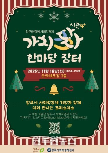 이번 행사는 ‘미리맞는 크리스마스, 가치를 선물하세요~’라는 주제로, 청주지역 사회적경제기업들의 판로를 확대하고 지역사회에 건강한 소비문화를 확산하고자 마련됐다.