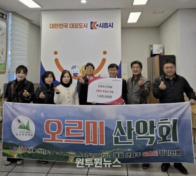 (원투원뉴스) 시흥시 매화동 오르미 산악회는 지난 11월 10일 매화동 행정복지센터를 방문해 지역 내 저소득 취약계층을 위한 후원금 100만 원을 전달했다.