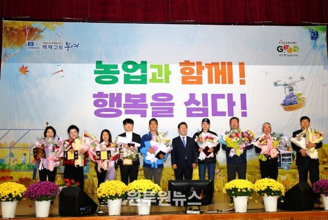 (원투원뉴스) 부여군은 한 해 농사를 마무리하고 결실의 기쁨을 함께 나누기 위해 지난 11일 부여국민체육센터 실내경기장에서 ‘농업과 함께, 행복을 심다!’라는 주제로 '제30회 부여군 농업인의 날 기념식'을 성황리에 개최했다.