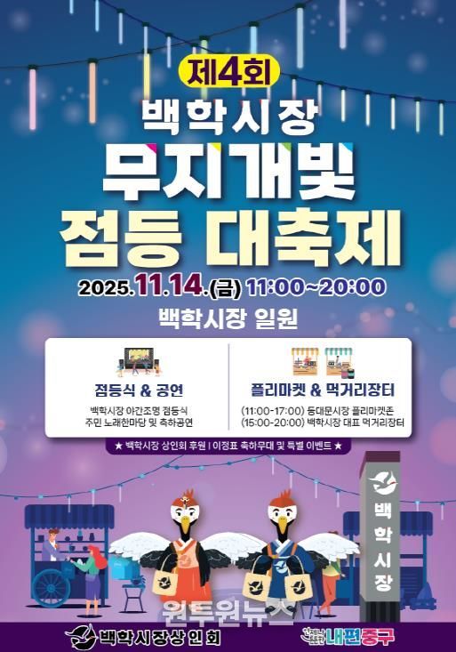 구 관계자는 “백학시장은 오랜 시간 지역 상인과 주민이 함께 지켜온 생활공간”이라며 “이번 점등식이 시장의 밤을 밝히듯, 전통시장에 새로운 활력을 불어넣고 보다 많은 방문객이 찾아오는 계기가 되길 바란다”고 전했다.