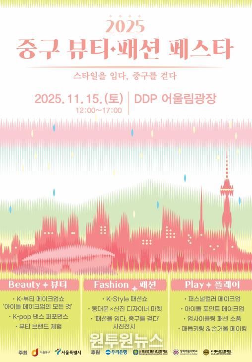 (원투원뉴스) 서울 중구는 오는 15일 오후 12시부터 5시까지 동대문디자인플라자(DDP) 어울림광장에서‘2025 중구 뷰티·패션 페스타’를 개최한다.