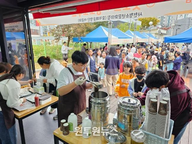 오후 2시부터 시작된 부스마당에서는 블록 키링, 진동 로봇, 아트컵 만들기 등 창의적인 체험 활동과 함께 아이스크림 쌓기 게임으로 즐거움을 더했으며, 핫도그, 청포도 주스 등 다양한 먹거리도 제공되어 참가자들의 오감을 만족시켰다.